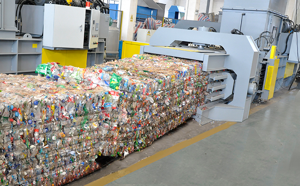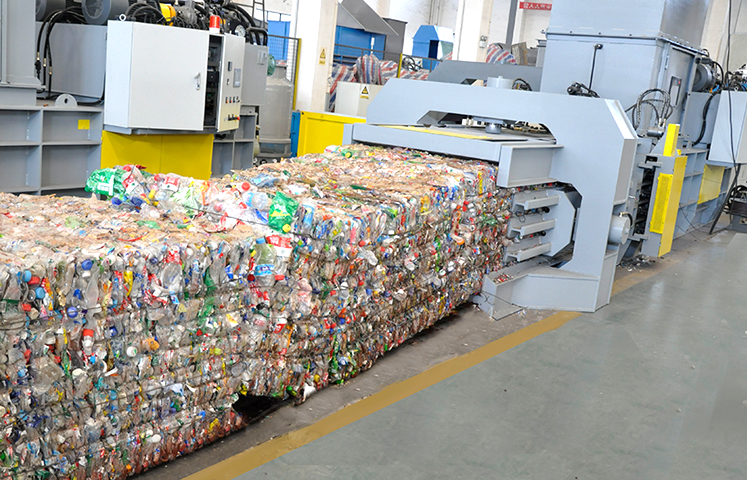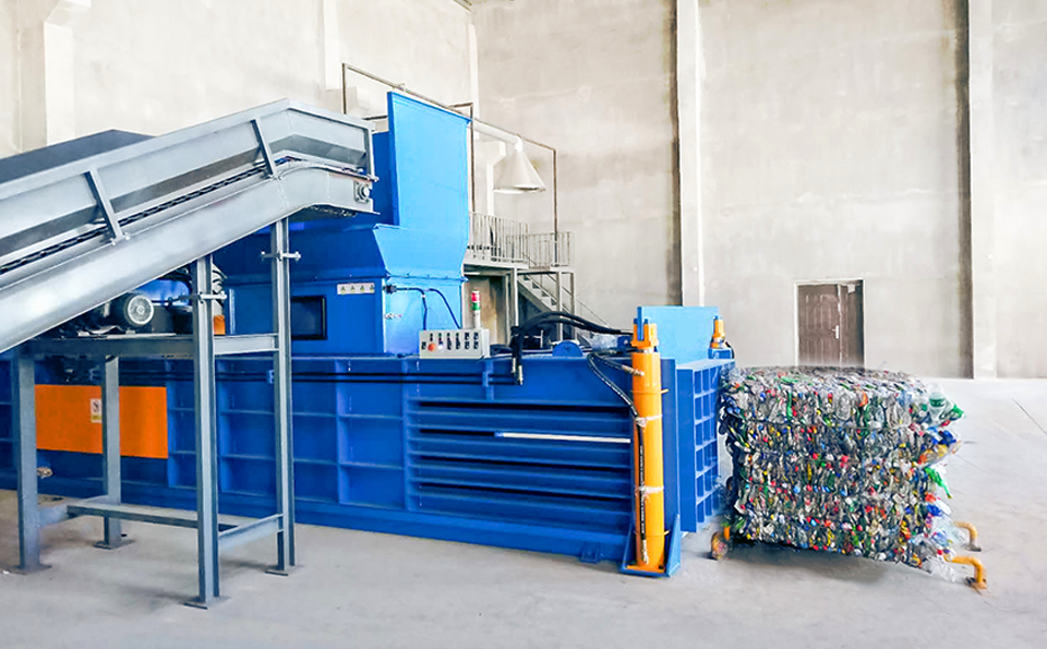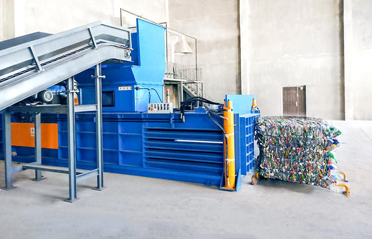 Suitable for compression and baling of various conventional materials such as hard cardboard,