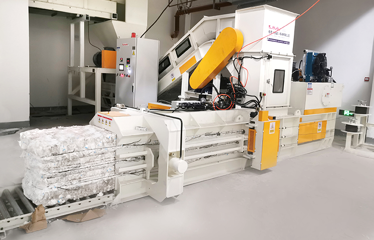 In the sanitary care products industry, scraps (non-woven fabric, dust-free paper) and defective products (e.g., diapers, sanitary napkins, pads) can be automatically collected, shredded, packaged, and dedusted via an online recycling system.